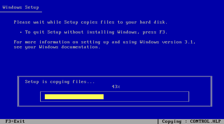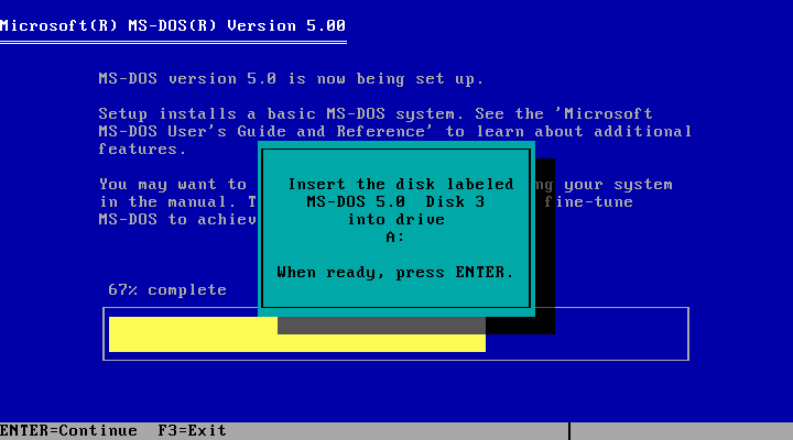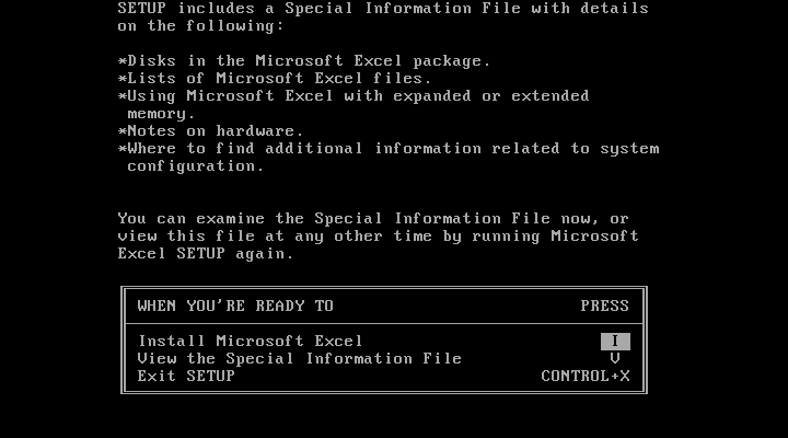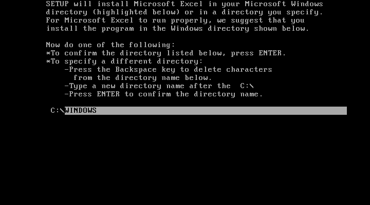 Now before we install Excel, we will of course need Windows. The process is 99% the same as DOS’ installation procedure so write and insert the disks you downloaded and follow the setup program.