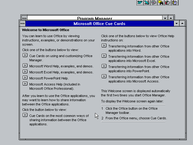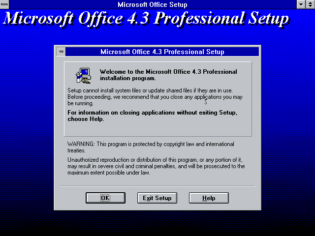 - To learn how to install all software used and needed look at the installation guide for DOS, Word 5.5, Excel 2.1d, Windows 3.1 and Office 4.3.