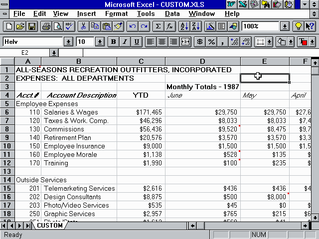 So, Windows 2.03 and Excel 2.1 completely failed our newer files test. Now, lets see if the newer Excel 5.0 fares any better.